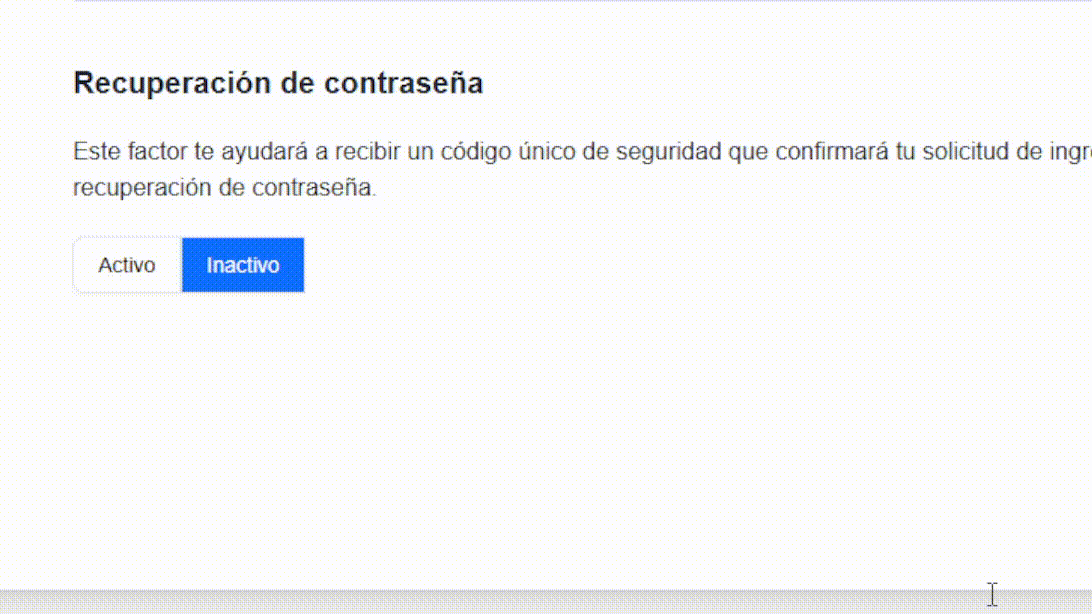 En la ventana de Recuperación de contraseña se da clic en ‘Activo.
