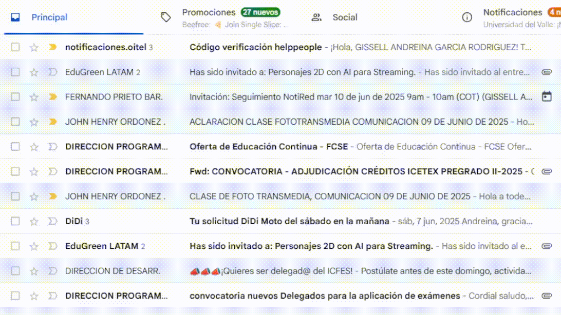 Revise la bandeja de entrada del correo institucional buscando la siguiente notificación:
